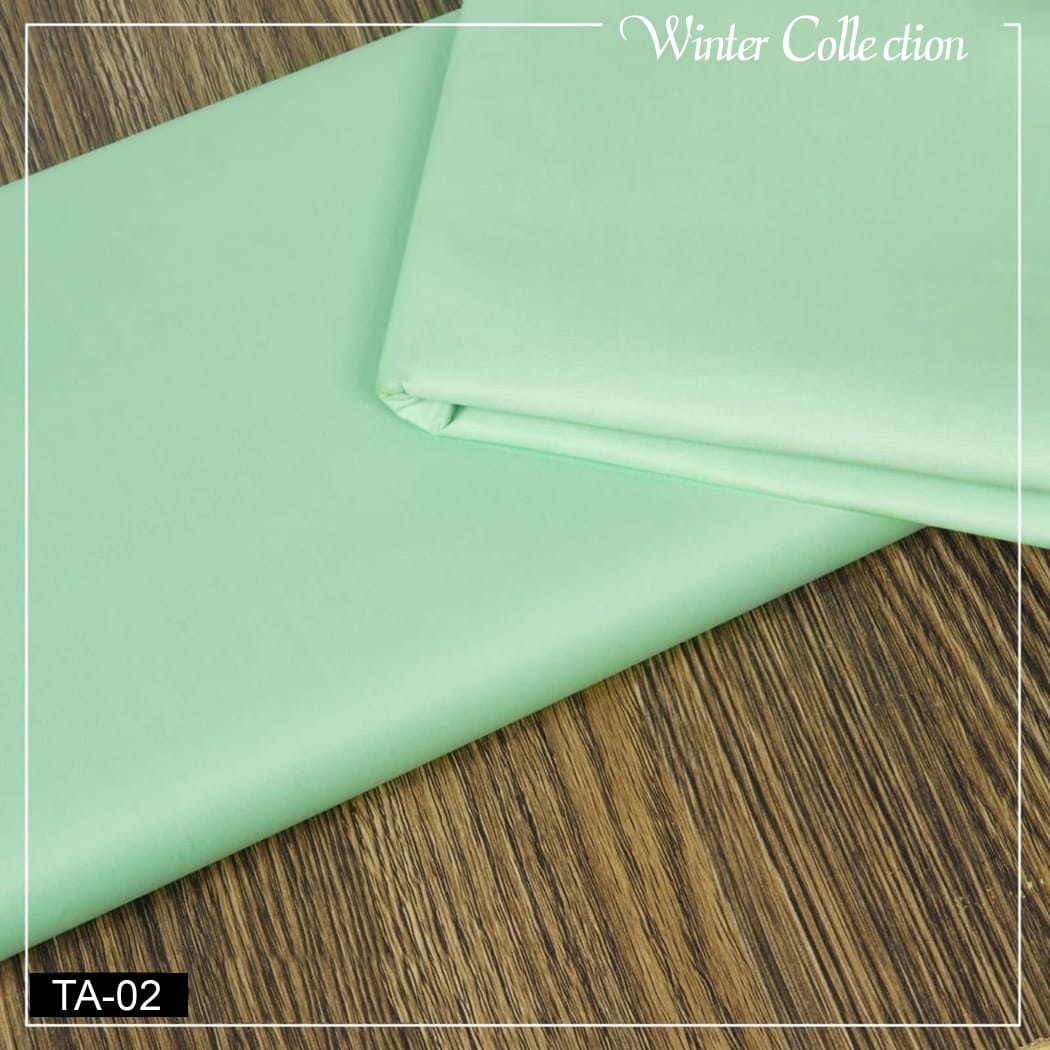 Gul Ahmed Cotton Satin, also known as Cotton Sattain, is a premium-quality blended fabric made from 100% pure cotton with a satin weave finish that gives it a soft, smooth, and slightly lustrous surface. The fabric is tightly woven using fine yarns, usually in a 40s or 60s count, which enhances its strength, durability, and elegant drape. It combines the comfort and breathability of cotton with the subtle sheen of satin, making it ideal for both summer and winter wear. The fabric has a medium weight and is often mercerized to improve color depth, smoothness, and resistance to shrinkage. It is easy to stitch and maintains its shape and shine even after multiple washes. Gul Ahmed Cotton Satin is widely used for making high-end men’s and women’s suits, kurtas, and luxury bedding items due to its refined texture and premium feel.